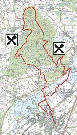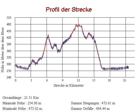 Streckenverlauf: START „Rathaus Bad Staffelstein" - Bahnhof - Alte Bahnunterführung - Richtung REHA-Klinik - Unnersdorf - Radweg - am Cafe „Zollhaus" rechts zum Gasthaus Anker - dort den Berg hinauf - nach 200 Meter links zur Straße Richtung Unnersdorf Hausen - halblinks am Wald über den Wiesen- und Flurbereinigungsweg zur Straße Unnersdorf - Kloster Banz - dort auf der MARATHON-Strecke bis zur Auffahrt des Forsthauses - dann links am Forsthaus vorbei auf dem Feld- und Waldweg hinauf zur Steglitz - unterhalb erst links, dann rechts an ihr vorbei zur Forststraße Unnersdorf-Altenbanz, diese überqueren und halblinks hoch - geradeaus weiter bis kurz vor Altenbanz (die ersten Häuser sind vom Wald aus sichtbar) - dort nach rechts - an der nächsten Weggabelung geradeaus immer im Wald bleiben bis zu